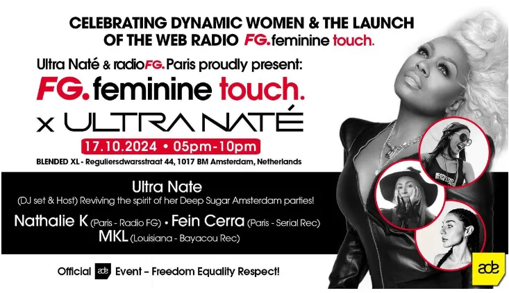 Pour célébrer les artistes électro féminine, et lancer la webradio « Feminine Touch », nous convions la légende de la house music Ultra Naté, ainsi que les talents Fein Cerra, MKL et Nataly K. Tout cela, dans un des endroits les plus cool d’Amsterdam, Blend XL