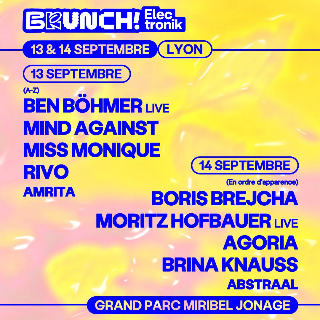 Après une édition 2024 chaleureuse et rassembleuse, Brunch Electronik revient à Lyon pour deux jours de musique et de partage, dans un cadre naturel exceptionnel à quelques minutes du centre-ville. La programmation s’annonce déjà grandiose : Ben Böhmer, Boris Brejcha, Mind Against, Miss Monique, Agoria, Moritz Hofbauer... autant de grands noms réunis pour faire danser les festivaliers les pieds dans l’herbe.