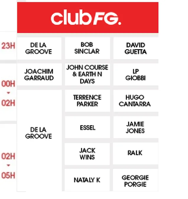 Les jeudis, vendredis et samedis, les meilleurs DJ de la planète, mixent en exclusivité sur RADIO FG… Jusqu’au bout de la nuit, c’est CLUB FG.