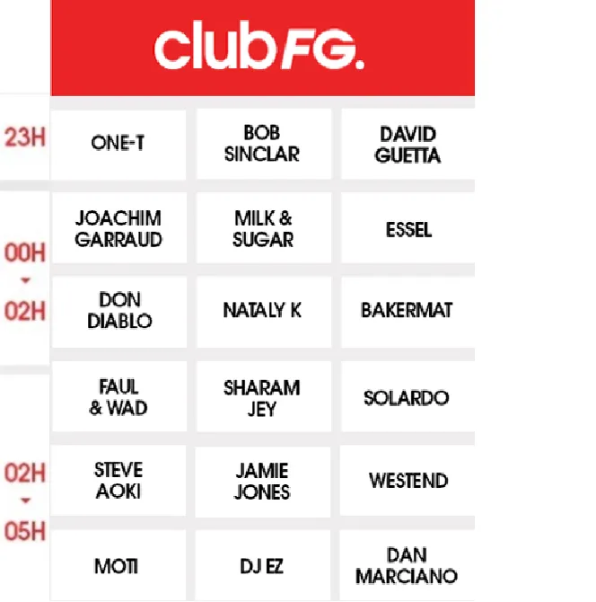 Les jeudis, vendredis et samedis, les meilleurs DJ de la planète mixent en exclusivité sur RADIO FG… Jusqu’au bout de la nuit, c’est CLUB FG.