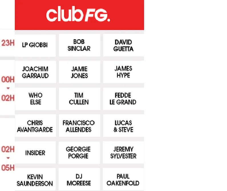 Les jeudis, vendredis et samedis, les meilleurs DJ de la planète mixent en exclusivité sur RADIO FG… Jusqu’au bout de la nuit, c’est CLUB FG.