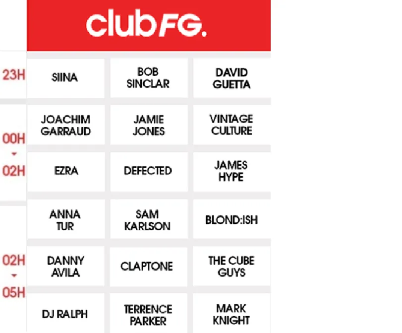 Les jeudis, vendredis et samedis, les meilleurs DJ de la planète mixent en exclusivité sur RADIO FG… Jusqu’au bout de la nuit, c’est CLUB FG.