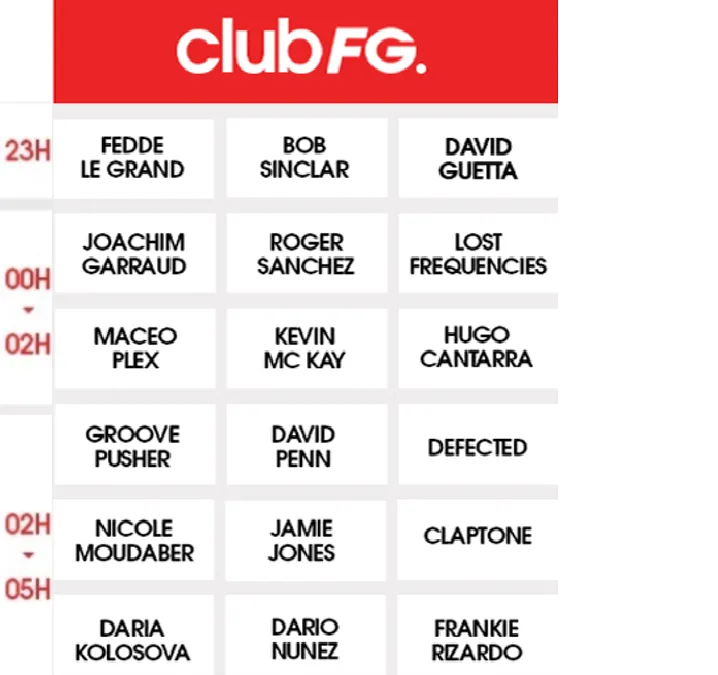 Les jeudis, vendredis et samedis, les meilleurs DJ de la planète mixent en exclusivité sur RADIO FG… Jusqu’au bout de la nuit, c’est CLUB FG.