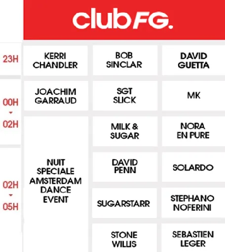 Les jeudis, vendredis et samedis, Club FG ouvre ses portes aux meilleurs DJs de la planète.