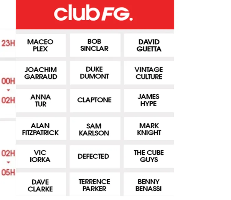 Les jeudis, vendredis et samedis, les meilleurs DJ de la planète mixent en exclusivité sur RADIO FG… Jusqu’au bout de la nuit, c’est CLUB FG.