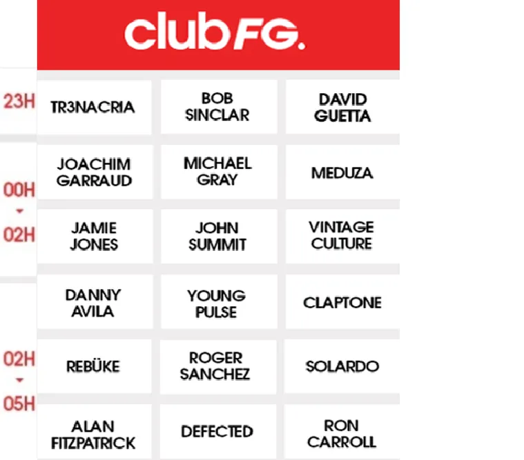 Les jeudis, vendredis et samedis, les meilleurs DJ de la planète mixent en exclusivité sur RADIO FG… Jusqu’au bout de la nuit, c’est CLUB FG.