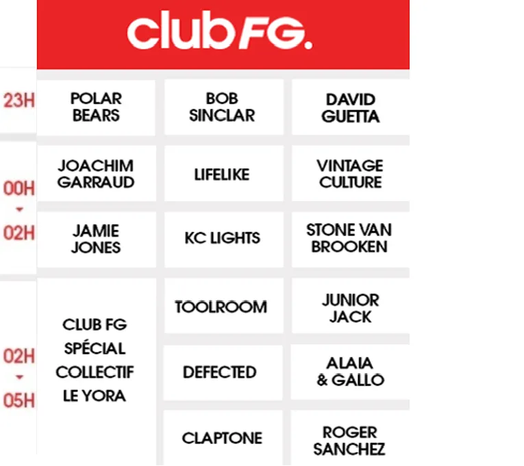 Les jeudis, vendredis et samedis, les meilleurs DJ de la planète mixent en exclusivité sur RADIO FG… Jusqu’au bout de la nuit, c’est CLUB FG.