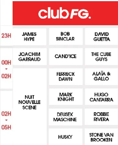 Les jeudis, vendredis et samedis, les meilleurs DJ de la planète, mixent en exclusivité sur RADIO FG… Jusqu’au bout de la nuit, c’est CLUB FG.