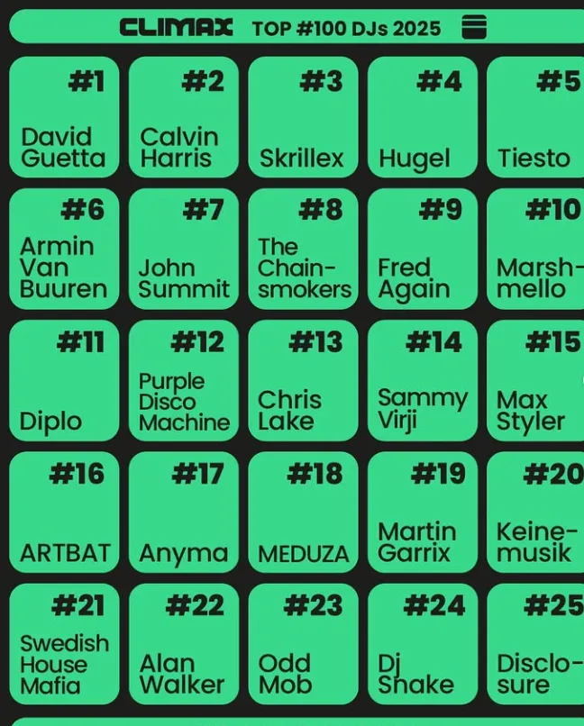 Climax Top 100 DJs 2025 : c’est quoi ce nouveau classement basé uniquement sur des données ?