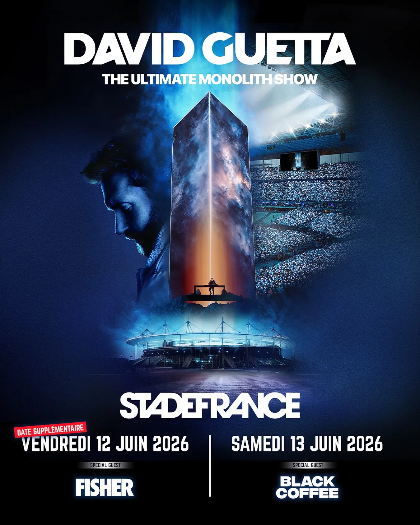 Première dans l'enceinte dyonisienne dans la carrière du DJ star français. Mais David a décidé de nous gâter encore plus avec cette annonce surprise hier soir d'un deuxième The Ultimate Monolith Show au Stade de France, la veille le vendredi 12 Juin 2026.