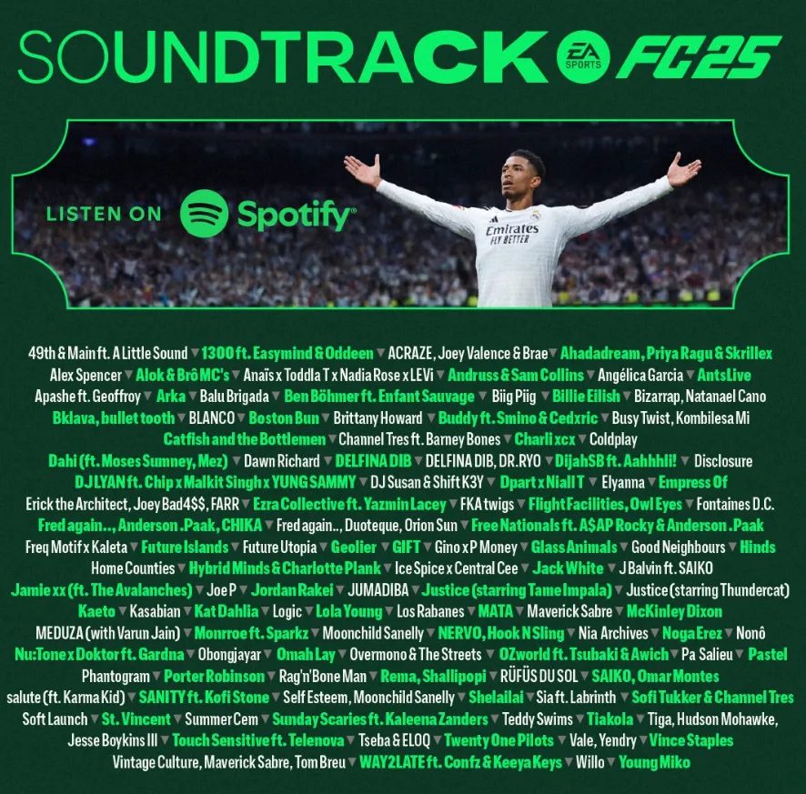 EA Sports FC 25 vient de dévoiler la bande son de son nouveau jeu, et à notre grande surprise elle est très électronique.