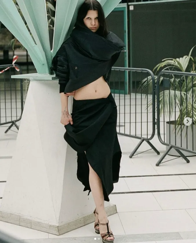 Laura Gerte crée des vêtements transformateurs axés sur la confiance en soi et la durabilité, représentés par une féminité autonome - un corps qui retrouve son pouvoir et danse avec toutes ses polarités. Des silhouettes dramatiques associées à des formes ludiques, réalisées à partir d'hybrides textiles à partir de vêtements existants. Des passepoils épais dominent les designs, créant des volumes uniques et des formes caractéristiques.