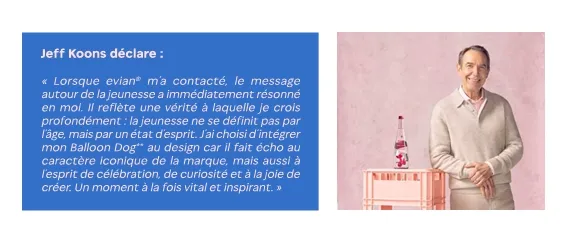 En 2026, evian célèbre deux siècles d’histoire avec une élégance rare, entre héritage alpin et modernité éclatante. Deux cents ans d’une eau née au cœur des Alpes françaises, devenue icône mondiale. Deux cents ans d’un mantra devenu signature : Live Young. Pour marquer cet anniversaire, la maison s’offre une collaboration à la hauteur de son aura. Jeff Koons, figure majeure de l’art contemporain, imagine une bouteille collector en verre rose. Un objet désir, à mi-chemin entre sculpture et design. Inspirée de son iconique Balloon Dog, elle incarne la joie, le jeu et l’émerveillement. Cette édition limitée s’inscrit dans une tradition créative prestigieuse.