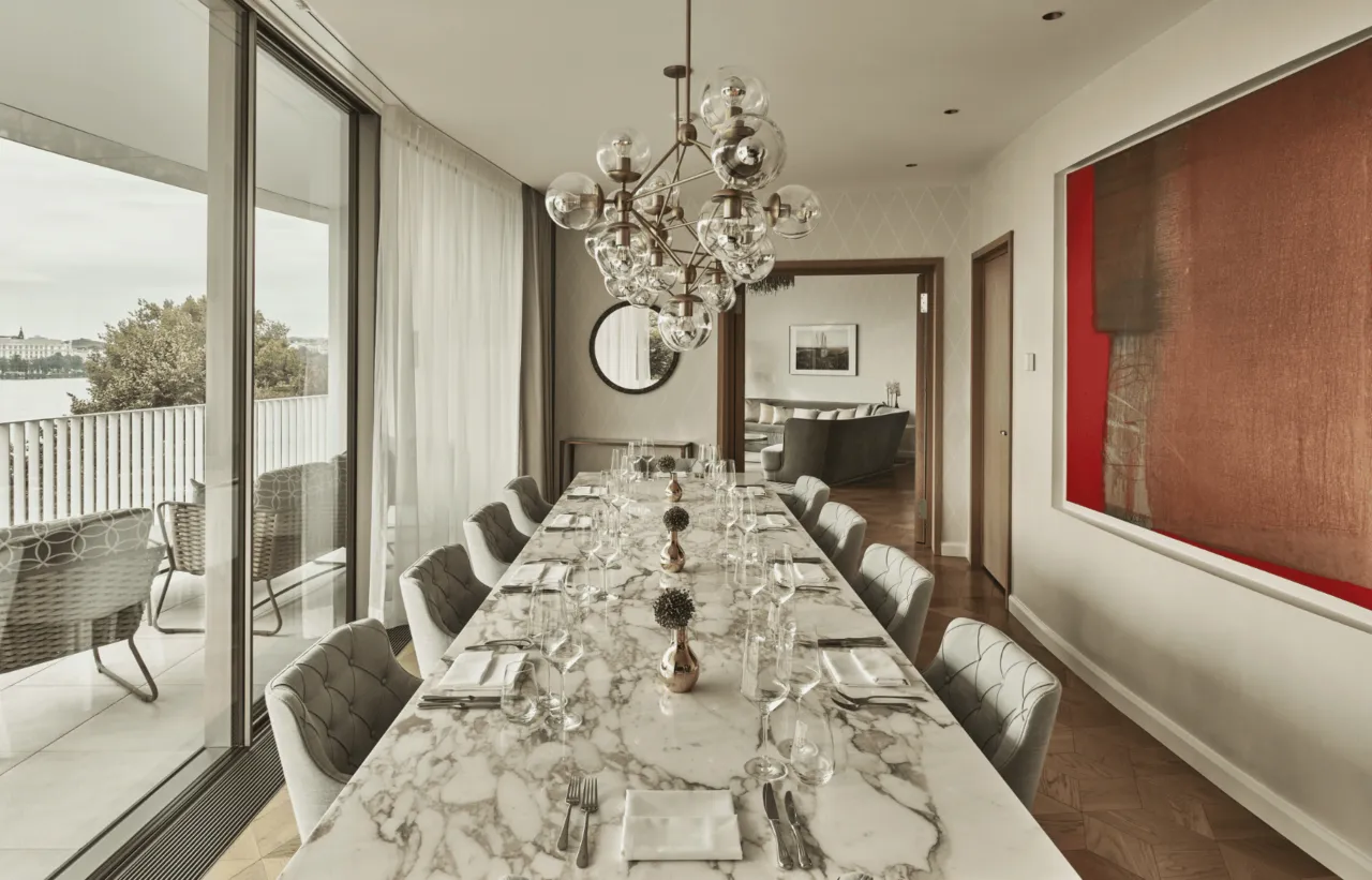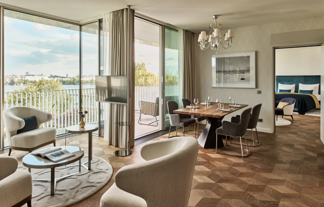 Niché sur les rives apaisantes du lac de l'Alster, l'hôtel Fontenay s'impose comme une adresse incontournable, une fusion parfaite entre l'effervescence urbaine d'Hambourg et la quiétude d'une retraite luxueuse. Sa situation privilégiée offre un accès aisé aux trésors culturels de la ville – la Kunsthalle, le Bucerius Kunstforum – et aux quartiers les plus avant-gardistes, tout en demeurant une oasis de sérénité.
