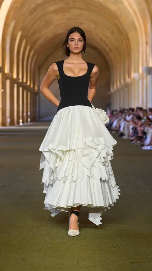 Fidèle à sa réputation de maître des lieux emblématiques, Simon Porte Jacquemus a choisi le cadre majestueux de l'Orangerie du Château de Versailles pour y présenter sa vision du Printemps-Été 2026. Un choix audacieux qui, une fois de plus, a rassemblé les figures les plus influentes de la mode et du cinéma — la sublime Deva Cassel foulant le podium en tête — aux côtés de ses plus proches intimes.