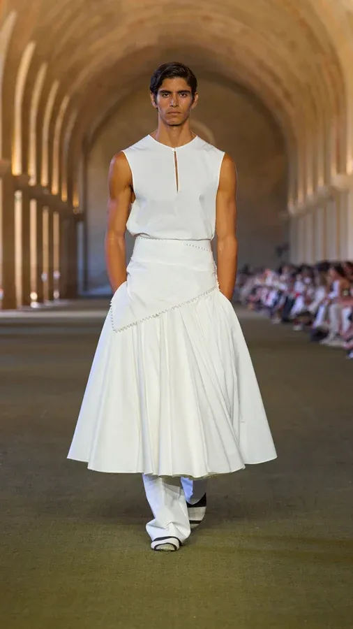 « Cette collection est un hommage à ma famille, mes racines. Là d’où je viens, là où je vais », a confié le créateur, visiblement ému. Simon Porte Jacquemus, ce conteur né, continue d'écrire une lettre d'amour poignante à son héritage familial, un récit entamé il y a seize ans, au moment même de la naissance de sa maison.