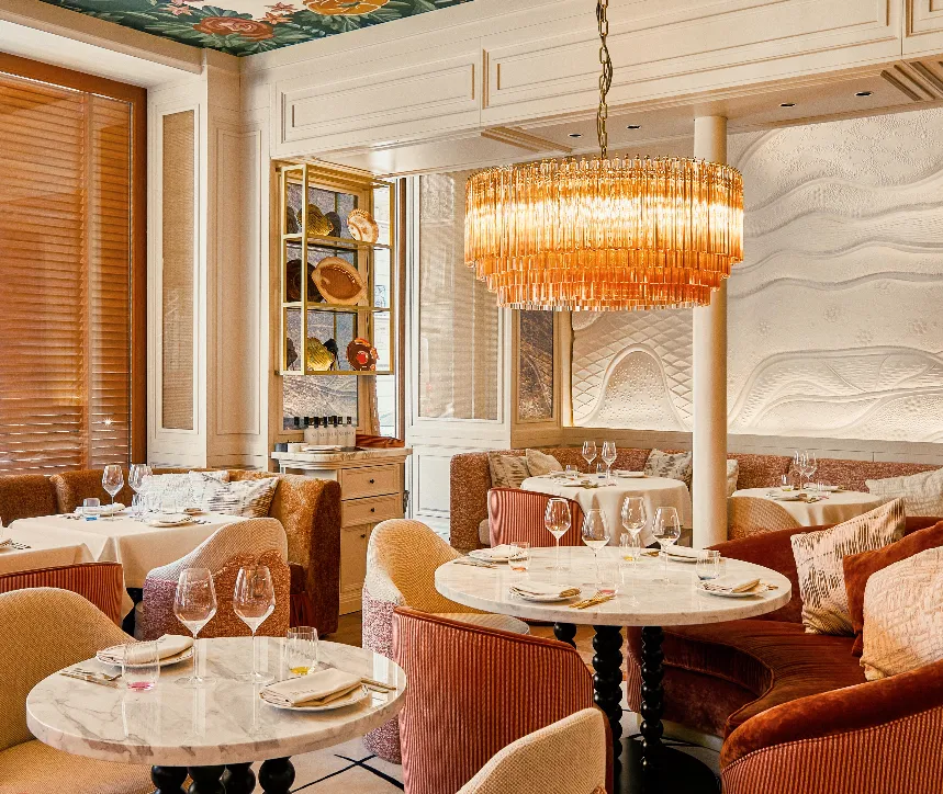 Baignés de lumière, les intérieurs dévoilent une palette solaire de jaunes citron, de verts olive et de terres cuivrées, hommage raffiné aux rivages d'Amalfi. Le four à pizza signature, l'étal de fruits de mer et les citronniers diffusant un parfum d'été composent un décor vibrant, à la fois chic et joyeux.