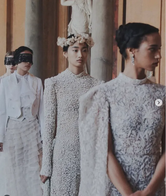 Pour ajouter à la fraîcheur contemporaine, Maria Grazia Chiuri a sollicité son collaborateur cinématographique favori, le cinéaste italien Matteo Garrone, pour projeter son court-métrage Les Fantômes du Cinéma en accompagnement du défilé, sous la forme d'une diffusion en direct.