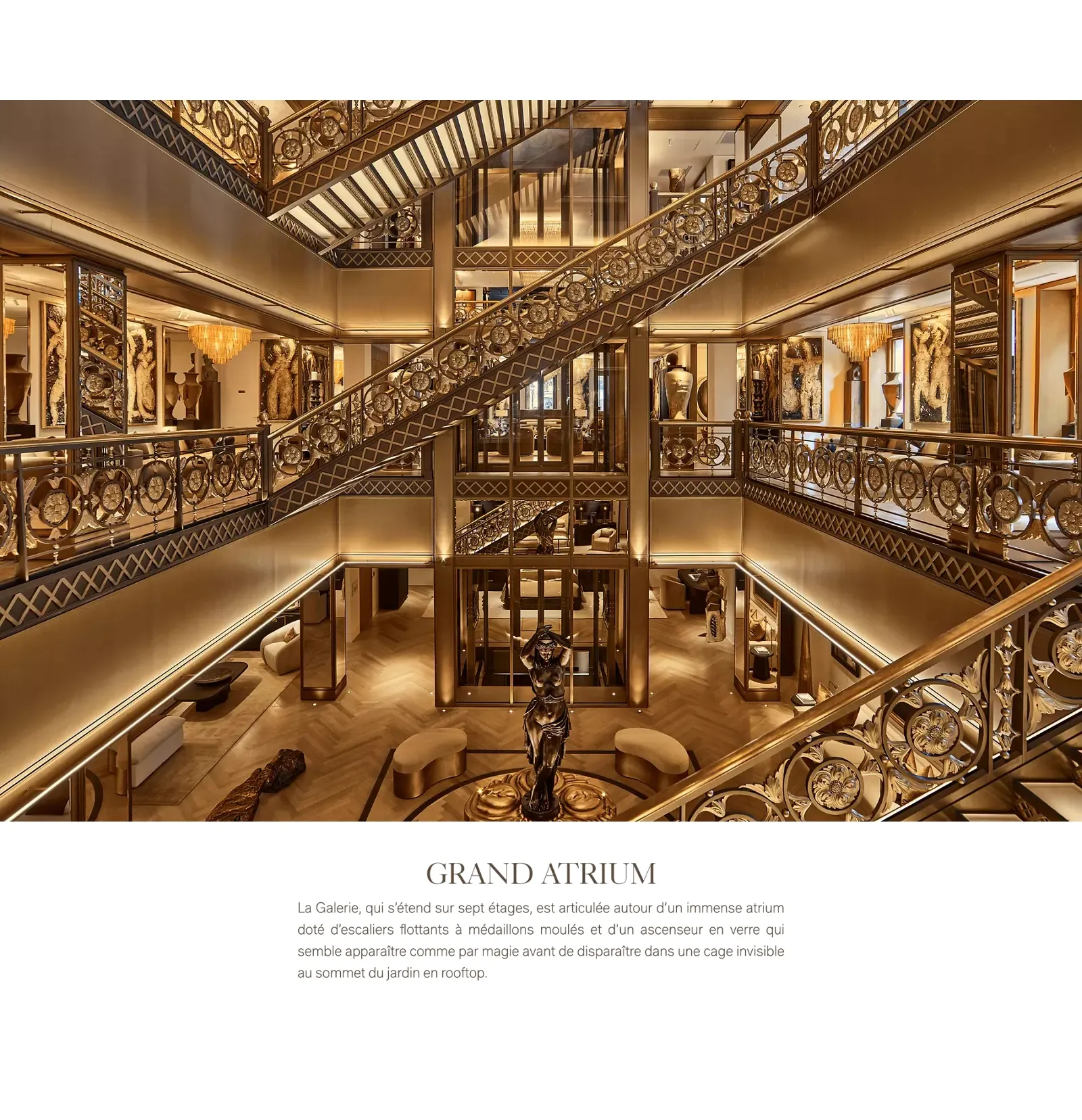 RH Paris est une cathédrale du design, un écrin de 7 niveaux et 3 900 m² où mobilier, artefacts et œuvres d’art venus du monde entier dialoguent comme dans un musée vivant.
