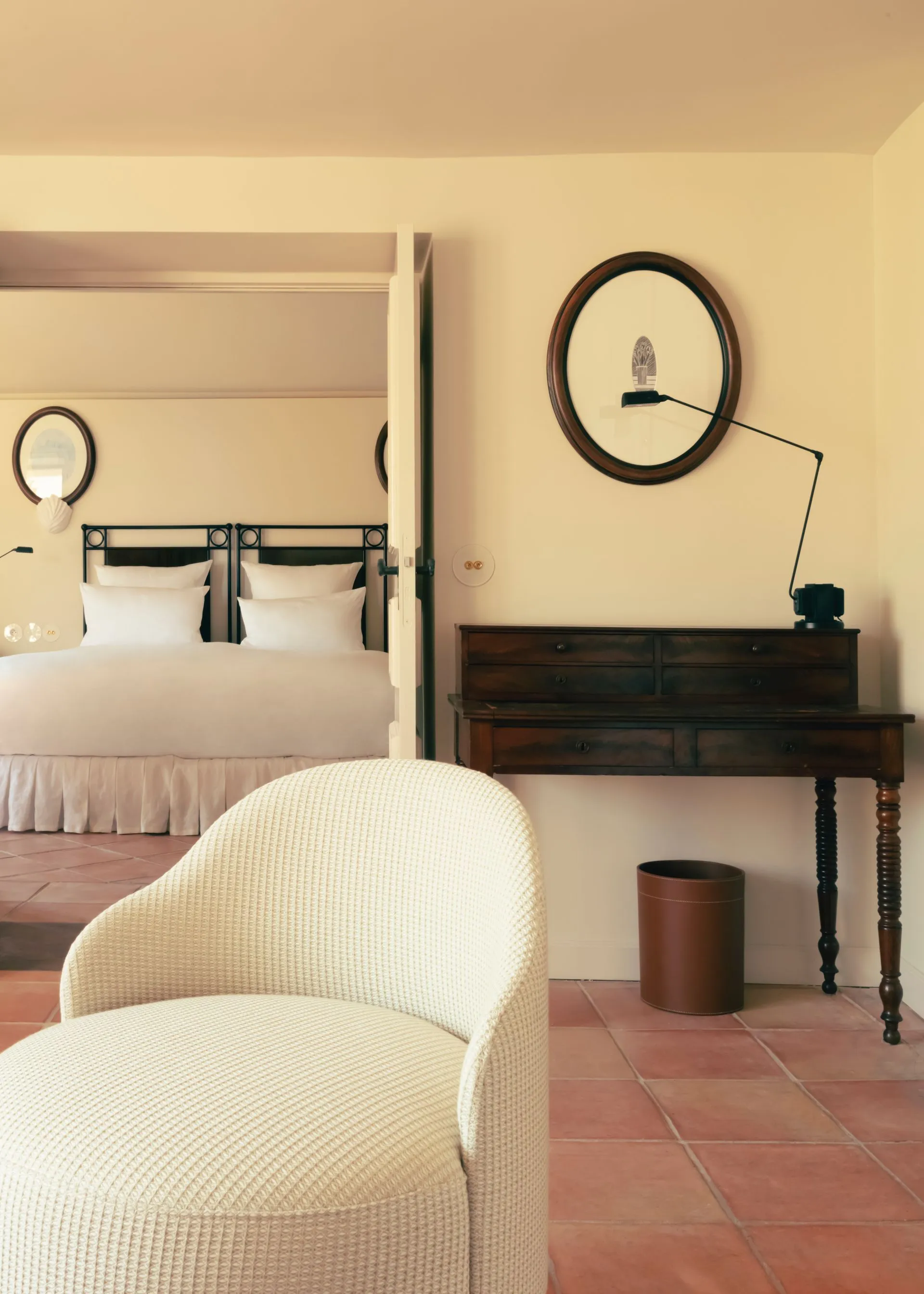 Les chambres, baignées de lumière douce, murmurent les souvenirs des artistes et écrivains qui ont marqué l'histoire de ce lieu. Elles évoquent la douceur méditerranéenne et invitent à la rêverie. Certaines s'ouvrent sur les toits et le clocher emblématique de Saint-Tropez, offrant des vues pittoresques, tandis que d'autres embrassent l'horizon marin.
