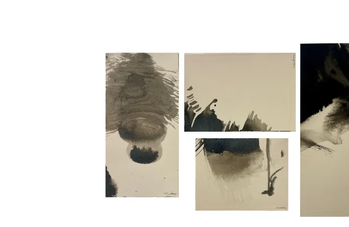 Thierry CHAVENON SHIBUI Quatre encres sur papier signées et contre signées 20,5 x 10,3 cm / 10 x 13,1 cm / 16 x 11,2 cm / 23 x 14 cm