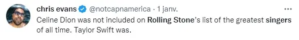 Les réseaux sociaux se sont enflammés après la mise en ligne de l’article, notamment les fans de Madonna et Céline Dion qui déplorent que les chanteuses ne fassent pas parties du top 200. On peut ainsi lire, « c’est un crime contre l’humanité » ou encore « Céline Dion ne figure pas dans la liste des plus grands chanteurs de tous les temps, Taylor Swift oui. ».
