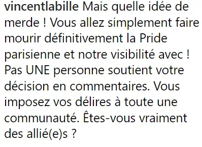 Suite à cette vague de colère, l’Inter-LGBT a répondu « Plus que jamais, l’ensemble des méthodes de sonorisation et modes de mobilités non-motorisées sont les bienvenues dans la manifestation. Faisons fleurir nos créativités, tout reste à inventer ».