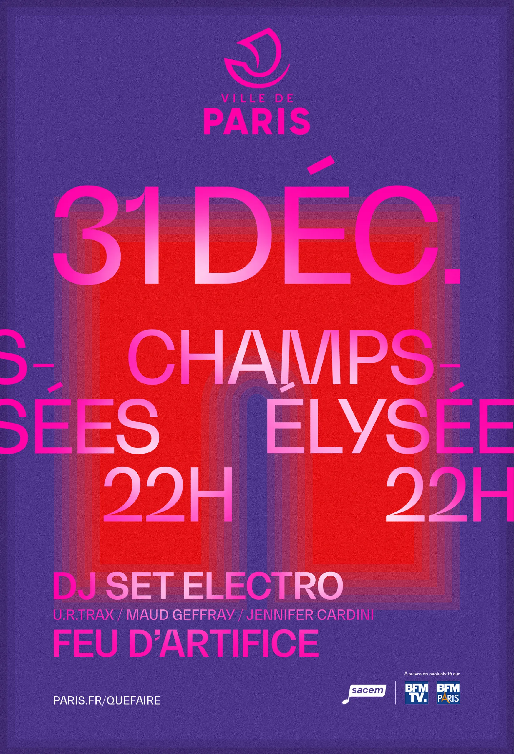 En marge ou plutôt en amont du traditionnel feu d’artifice qui a lieu sur les Champs-Elysées, se tiendra un concert de 2h30 réunissant un trio techno 100% féminin : Jennifer Cardini, célèbre artiste française installée à Berlin, Maud Geffray considérée comme la reine de la pop électronique, ainsi que u.r.trax, jeune artiste de 18 ans, organisatrice notamment des soirées "Under Rave". Des pointures et un axe assez underground, surprenant d’ailleurs comme choix fait par la Mairie de Paris qui aurait pu miser sur quelque chose de plus « grand public ».