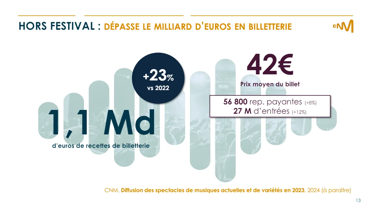 Une bonne chose puisque leur rapport montre que les Français entretiennent un lien fort avec la musique live, 47% des Français qui écoutent de la musique sont allés à un concert l’année dernière et 30% d’entre eux sont allés à un festival, soit une augmentation de 10% par rapport à 2022.