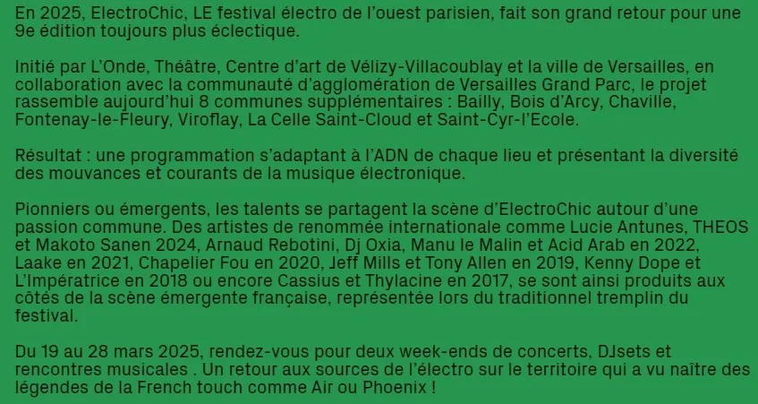 LE FESTIVAL ELECTROCHIC (19 au 28 mars 2025)