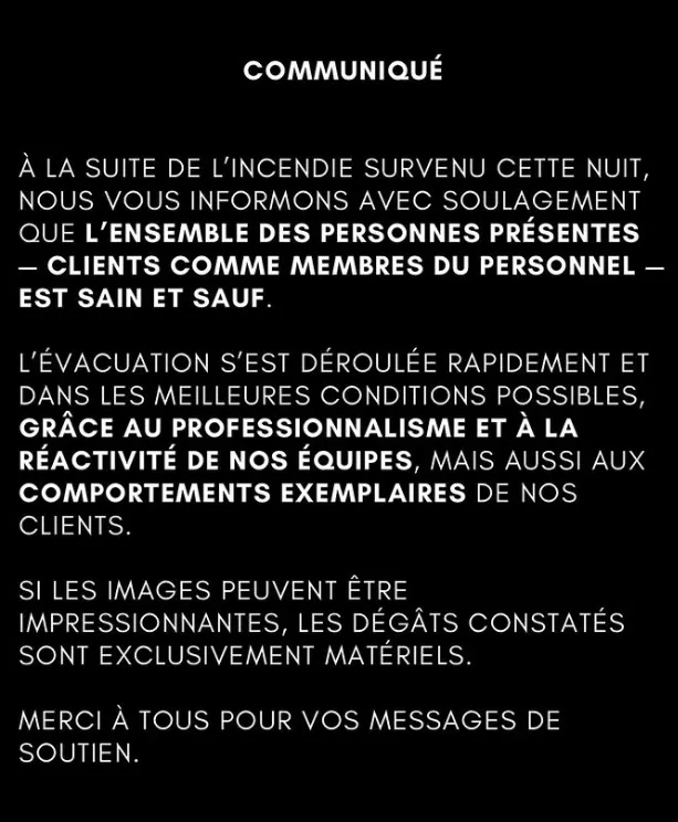 Le K Club, dans un communiqué officiel, souligne en effet « le professionnalisme des équipes et le comportement exemplaire des clients » et rappelle que l’essentiel est bien ce soulagement de n’avoir aucune victime suite à cet incendie, qui aurait pu avoir des conséquences bien plus dramatiques…