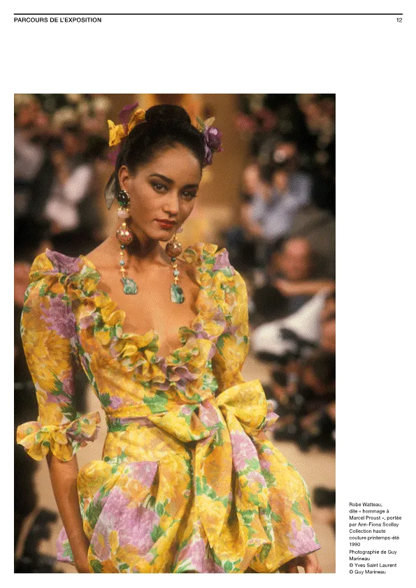 Cette admiration pour la nature, Yves Saint Laurent la partage avec de nombreux artistes et écrivains tout particulièrement avec Marcel Proust, un de ses auteurs favoris comme il le déclare dans L’Egoïste en 1987*. L’univers de l’écrivain transparaît dans les intérieurs du couturier autant que dans ses défilés. Quand le premier se plait à décrire les femmes comme des fleurs, le second les en recouvre pour leur rendre hommage.