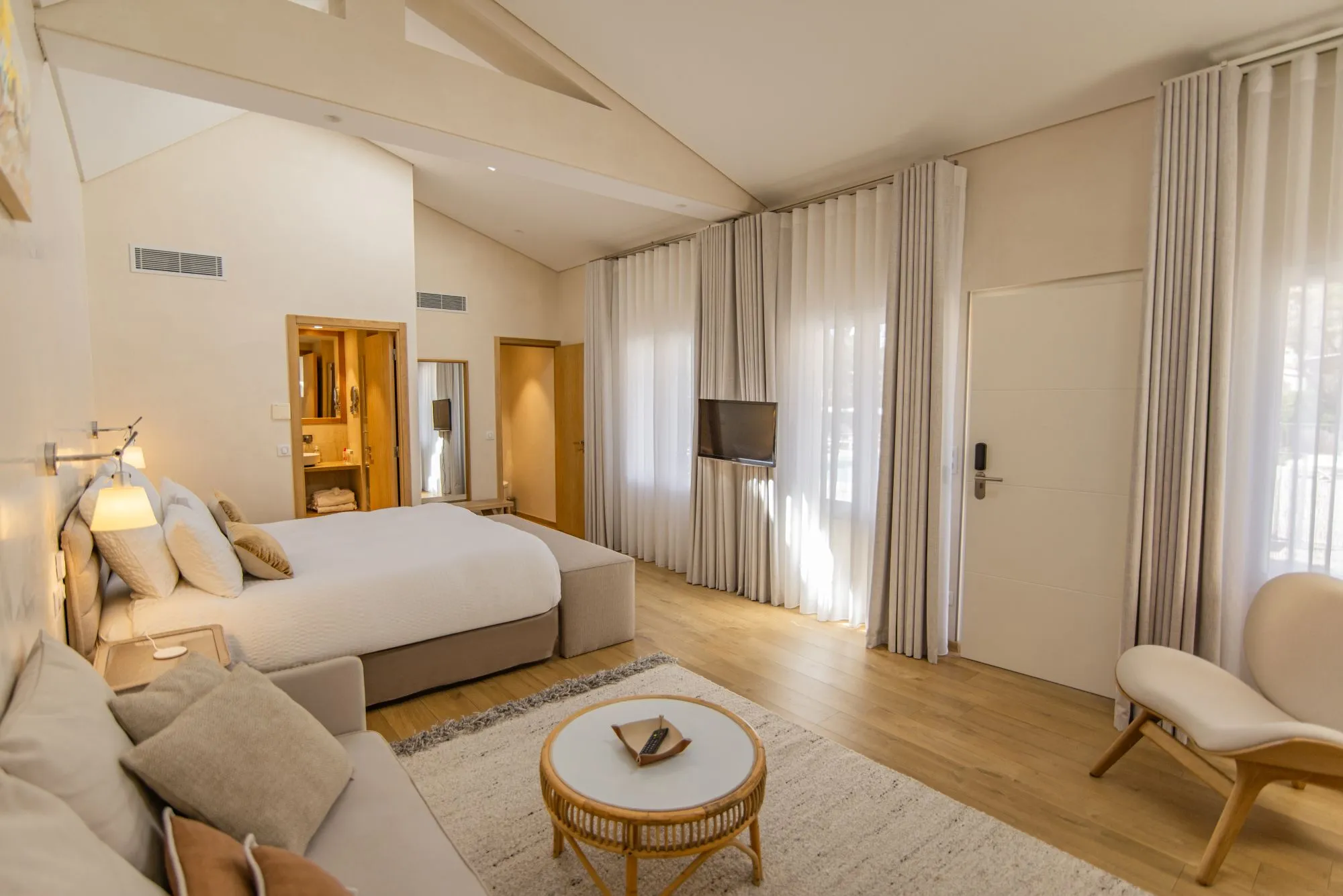 Le style est simple mais soigné : tons lumineux, matières naturelles, accents bohèmes. On y savoure des petits-déjeuners frais sur la terrasse, on pique une tête dans la piscine en mosaïque, et on se laisse tenter par une parenthèse bien-être au spa (massages, sauna, drainage…) ou une virée à vélo jusqu’aux criques secrètes du Cap. Une adresse douce et confidentielle, idéale pour se reconnecter à l’essentiel.