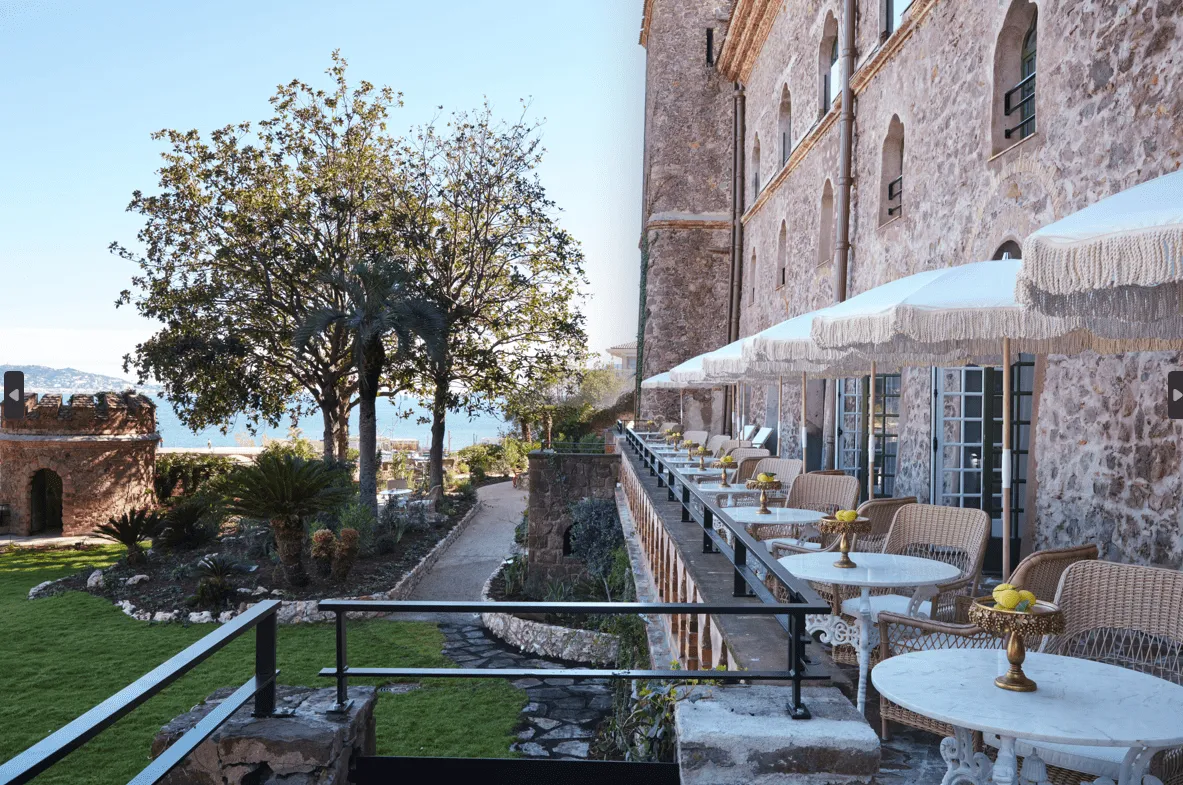 C’est le nouvel hôtel de la Côte d’Azur qui interpelle tous les amoureux de la French Riviera ; un château tout droit sorti d’un conte de fée, qui contemple la baie de Cannes et avec elle, la Méditerranée. Érigé en 1630, il abrita une savonnerie, devient finalement maison privée au début du XXe siècle. Harry Crowford, le propriétaire et Lord écossais, la dote de tourelles et de remparts crénelés. C’est en 2020 qu’Alexandra et Philippe Monnin, les fondateurs du groupe Millésime, ont un véritable coup de cœur pour cette curiosité alors abandonnée. 3 ans ont été nécessaires pour le rénover, le convertir en une adresse d’exception sans en altérer le passé, en en préservant toute l’authenticité. Ainsi, les parquets trop abîmés ont été réédités, un escalier et de nombreuses boiseries ont pu être restaurés. Des soieries et du mobilier de belle facture ; tout a été méticuleusement choisi pour se marier avec les teintes délicates qui décorent les espaces : jaune pâle, rose poudré, vert jardin et bien sûr bleu méditerranée. 44 clés investissent le château, mais aussi la Villa aux allures Art Déco et la Maison des Pêcheurs. Cette dernière, vaste de 208 m2, se réserve 3 chambres dont deux communicantes, parfaite pour une famille, idéale à privatiser. On peut aussi craquer pour les suites Millésime : 76 m2 avec terrasse. Deux chefs pour deux restaurants mais un même désir de sublimer les produits du terroir. Aux fourneaux de la Plage Blanche, les pieds dans le sable de la plus belle plage de Théoule-sur-Mer, Nicolas Boucher propose la fraîcheur de salades colorées, de poissons tout juste pêchés, de desserts tout en légèreté. Au piano du gastronomique Mareluna, installé dans la villa, Francesco Fezza joue la partition d’une cuisine locale aux parfums italiens. Farniente autour de la piscine avant de découvrir le spa Éc(h)o. Y sont prodigués des soins signés My Blend et KOS Paris : la détente est absolue.