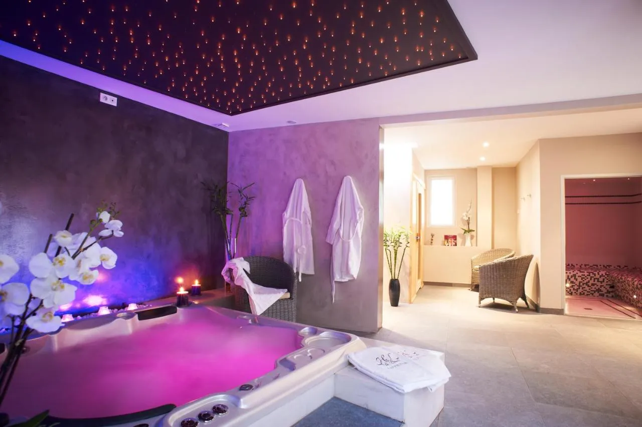 Quant au spa, plusieurs équipements viennent satisfaire les visiteurs en quête d’un instant détente. Jacuzzi cinq places avec les dernières technologies Clairazur, chromathérapie, sauna finlandais avec lambris en épicéa, hammam oriental entièrement carrelé en émaux de Briare, Muguet et Schiste avec diverses ambiances et cabine de soins en partenariat avec l'institut Bulle de Bien être sont à tester. Un espace bien-être soft mais qui réunit les essentiels de la plénitude.