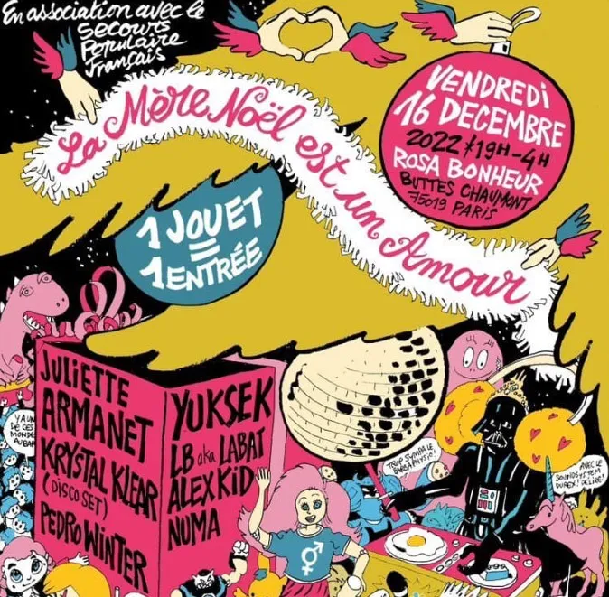 Et on termine à Paris avec l’événement qui allie musique et solidarité « La mère Noël est un amour », organisé au Rosa Bonheur vendredi soir. Une soirée organisée en collaboration avec le Secours Populaire pour que les enfants démunis puissent avoir un cadeau à Noël. Le concept simple : un jouet = une entrée, et niveau musique, vous retrouverez notamment Pedro Winter, Yuksek et Juliette Armanet.