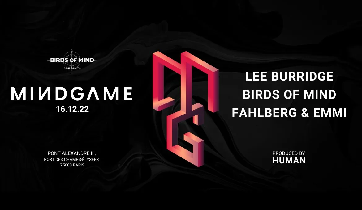Toujours à Paris, le duo français Birds Of Mind organise sa propre soirée mélodique intitulée Mindgame avec au programme Lee Burridge, Fahlberg & Emmi et donc Birds Of Mind, le tout sous le pont Alexandre III.