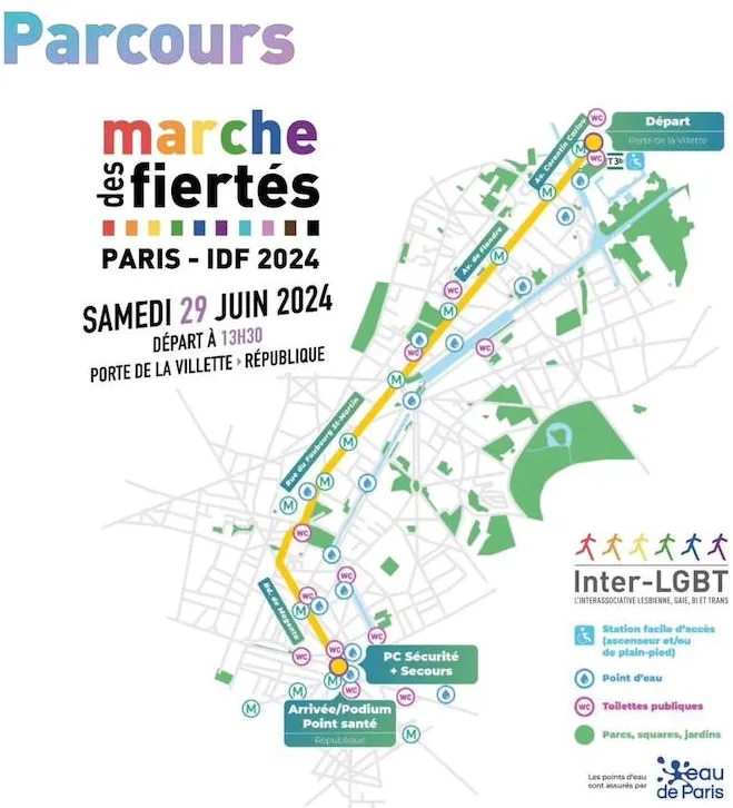D’un point de vue logistique, la marche des fiertés 2024 aura pour point de départ la porte de la Villette dans le 19ème arrondissement à partir de 13h30 pour se terminer place de la République.