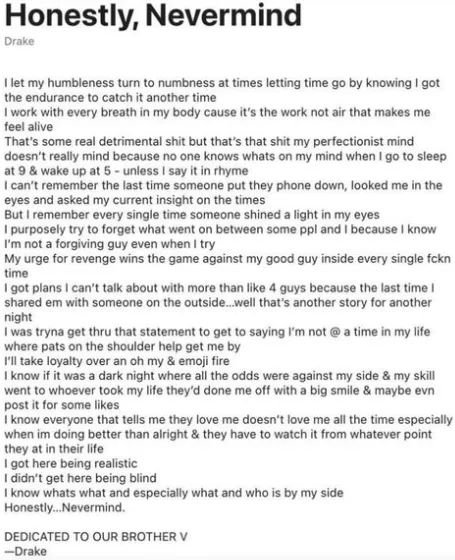 Plus globalement, Drake a voulu se rapprocher des sonorités électro, dance et house dans ce nouvel album « Honestly, Nevermind ». 14 titres planants et sensuels aux sonorités très estivales. De quoi nous donner envie de mettre à jour nos playlists…