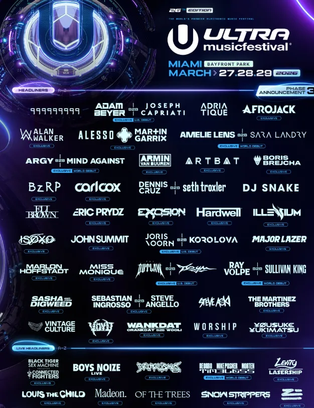 Le clou de cette Miami Music Week du vendredi 27 mars au dimanche 29 mars : l'Ultra Music Festival. Immense, gigantesque festival sur le Bayfront Park, en plein air pour une ambiance survoltée avec chaque année un line-up réunissant de très gros noms de la scène électro et en masse. On aura un oeil particulièrement attentif au live de Madeon, qui lance actuellement un nouveau chapitre dans sa carrière musicale.