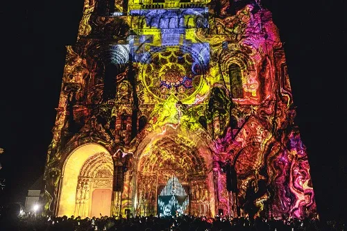 Il fallait se rendre devant la Cathédrale pour découvrir une scène installée devant ces immenses portes rouges et plusieurs milliers de personnes venues découvrir ce show monumental (sans jeu de mots).