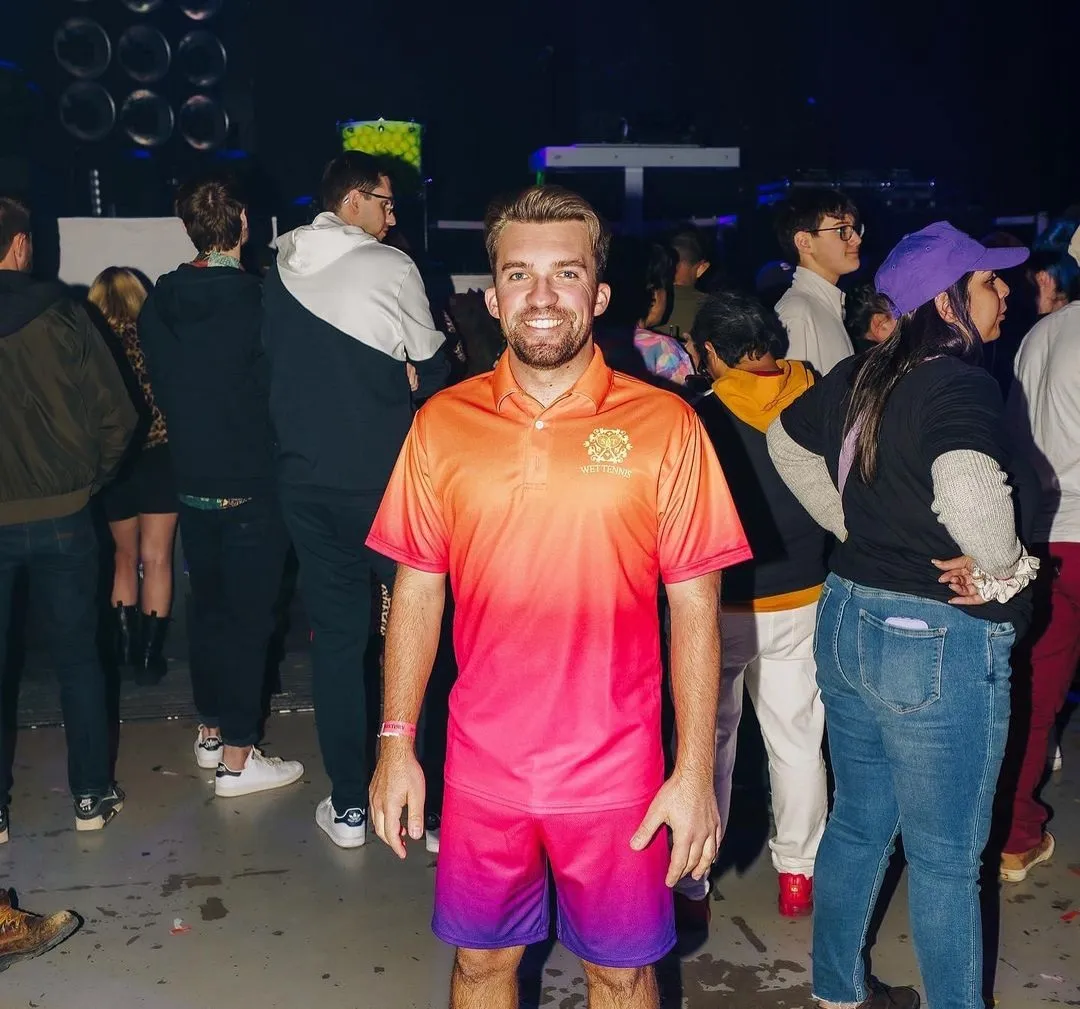 Pour leur merchandising d'avant-Noël, plusieurs artistes électro mettent le paquet et parfois, ça vaut le coup d'œil. Démarrons avec de la couleur. Pour cela, on peut se tourner vers les Sofi Tukker. Depuis la sortie de leur dernier album Wet Tennis, les couleurs et tenues très vives façon tennis sont la marque de fabrique du duo américain. Et ces tenues sont désormais à la vente : short et polo pour homme, jupe et haut pour femme et même des accessoires comme les chaussettes de tennis. Et comme vous pouvez le voir ci-dessous, plusieurs adeptes du duo ont été croisés avec les tenues récemment.