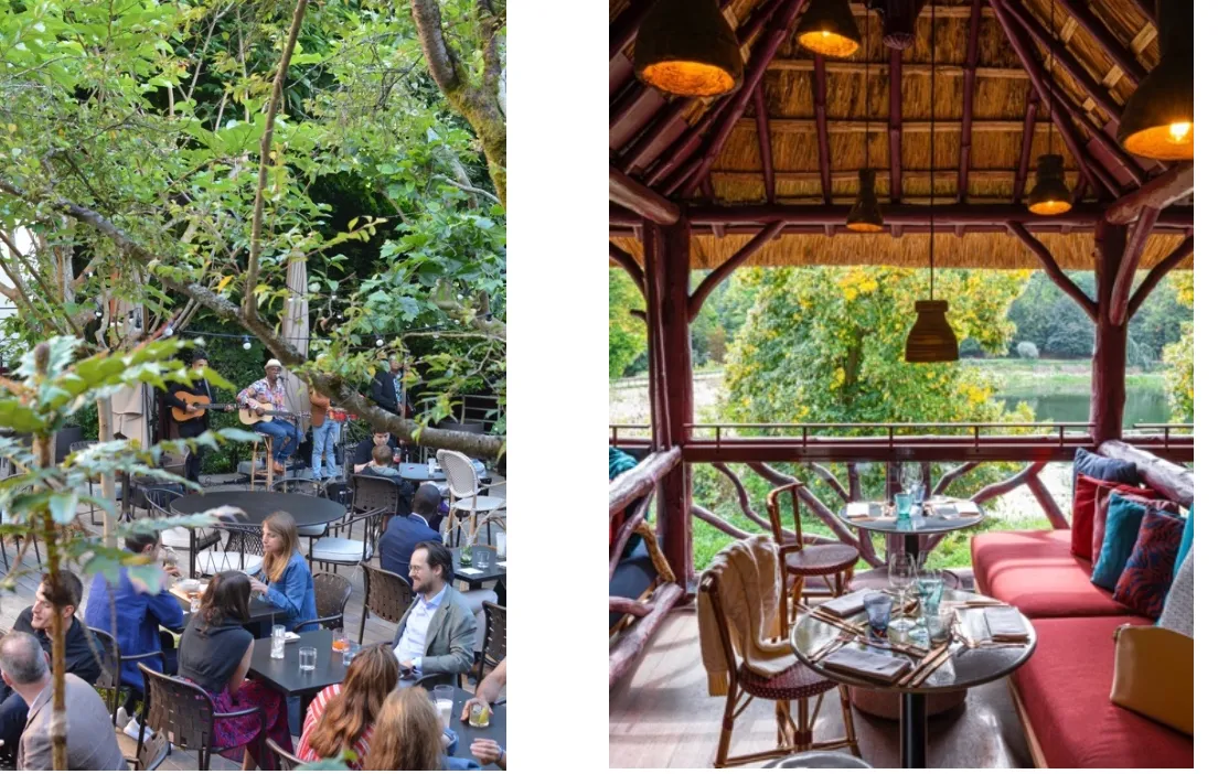 Vous préférez l’esprit guiguette à celui des palaces ? Qu’à cela ne tienne ! On vous a déniché la perle rare du côté de Ville d’Avray, à 15 minutes du centre de la capitale. Pour une fois, on s’éloignera un peu de la Seine pour rallier les rivages des Etangs de Corot, un Relais & Châteaux plongé en pleine nature. Et le déplacement en vaut la peine car ce 4 étoiles entouré de lacs célèbre la belle saison et la douceur de vivre en ouvrant sa guinguette au bord de l’eau, sous l’ombre bienfaisante des arbres. Conviviale et coquette, La guinguette des Etangs rend hommage au passé impressionniste des lieux, cette époque où les artistes -Corot en tête- venaient peindre en plein air avant de s’attabler pour trinquer à la lumière des lampions. L’ambiance est à la fête dans ce cadre historique… Chaque vendredi soir, jusqu’à la fin du mois de septembre, la jolie terrasse en bois accueille un DJ set ou un groupe de musique live que l’on écoute tout en sirotant un cocktail et grapillant des brochettes grillées, des tapas ou des dim sum. Et on peut même craquer pour les glaces artisanales agrémentées de meringuettes, de pistaches sablées, de fruits rouges ou de caramel onctueux…