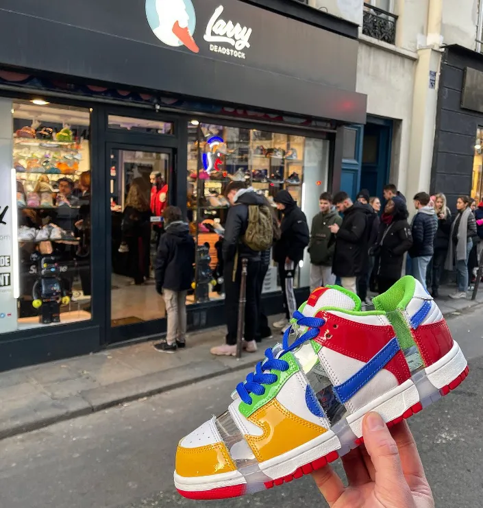Car figurez-vous qu’il existe une sorte de Bourse dédiée au marché de ces paires : Stock X. Un site internet qui permet de suivre en temps réel leurs cotes et leurs raretés. Un marché qui attire tellement de monde que certains (re)vendeurs n’hésitent pas à dormir pendant plusieurs jours devant une des boutiques pour récupérer une paire hyper rare… Premier arrivé, premier servi !