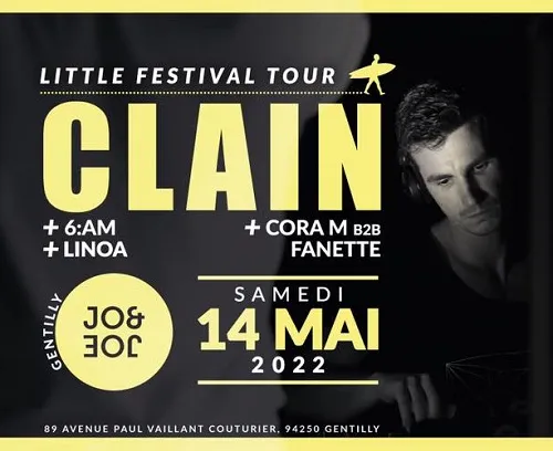 La soirée se déroulera au Jo&Joe Paris Gentilly, une ancienne fonderie et ses 200m² de jardin. Vous retrouverez aux platines Clain, le dj et producteur connu pour sa techno progressive et mélodique qui sera d’ailleurs l’invité d’Antoine Baduel jeudi dans l’Happy Hour. Les membres de la Little Family vont eux aussi mixer pendant l'événement, notamment Linoa, Cora M., Fanette et 6:AM.