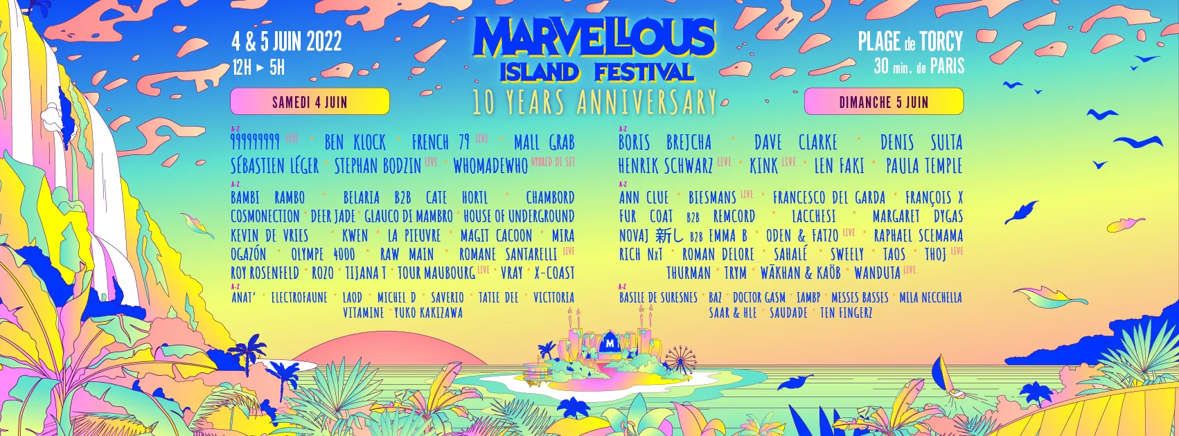 Imaginez-vous les pieds dans le sable au bord de l’eau, un soleil rayonnant au-dessus de vous, le tout au rythme de la musique électronique des 90 artistes présents sur place… La pandémie nous ferait presque oublier que cette sensation puisse exister, mais elle sera bien réelle les 4 et 5 juin prochains puisque Marvellous Island revient pour sa 10ème édition sur la plage de Torcy.