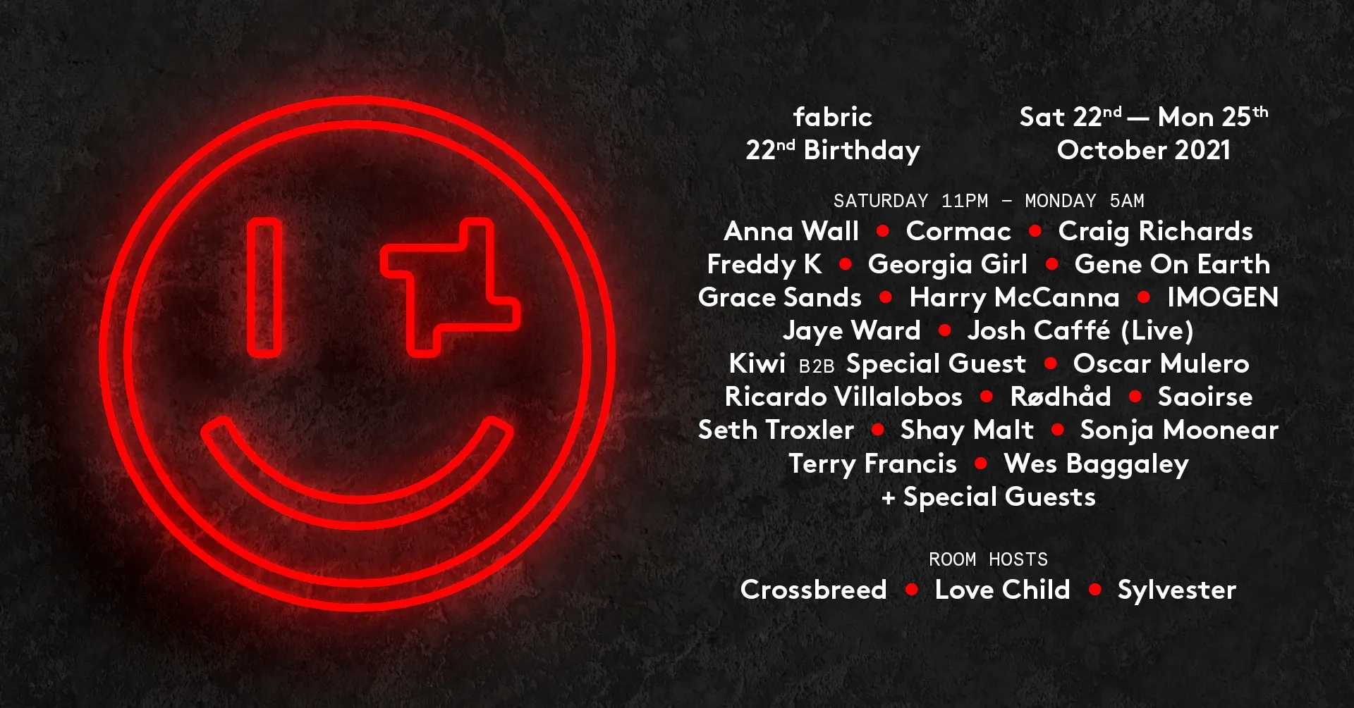 Pour celles et ceux qui souhaitent partir en week-end mais qui ne savent pas encore où aller, la Fabric à Londres fête son 22ème anniversaire tout le week-end en non-stop ! Avec une mention spéciale pour la journée/soirée du samedi où vous retrouverez entre autres Craig Richards, Ricardo Villalobos, Seth Troxler ou encore Sonja Moonear.