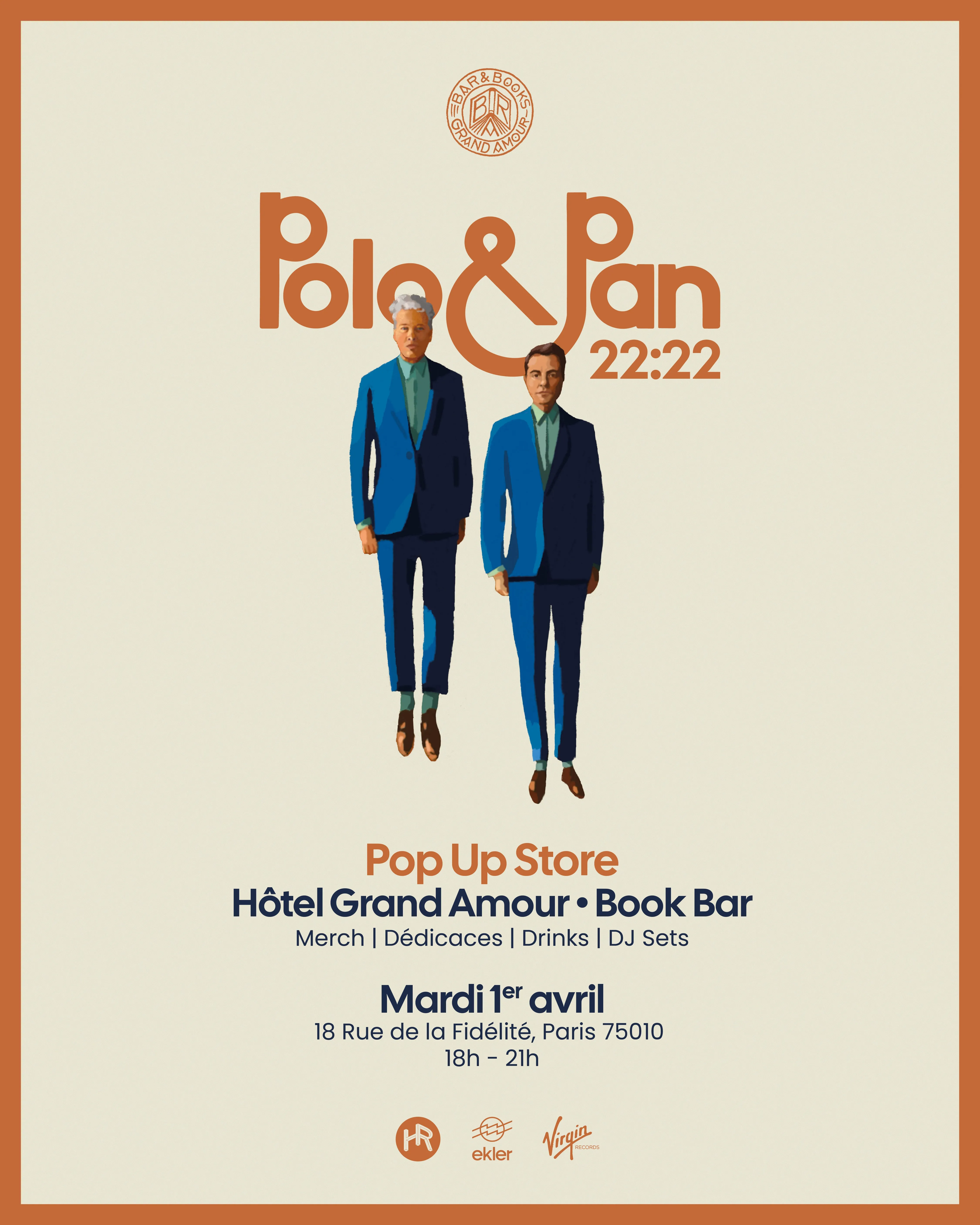 Et si vous êtes déjà convaincus, séduits par Polo & Pan, sachez qu'un pop up store (merch, dédicaces, drinks & DJ Sets) se tiendra demain, 1er avril, à l'occasion de la sortie de l'album. L’évènement aura lieu au Grand Hôtel Amour à Paris.