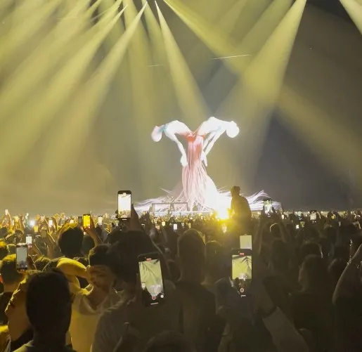 C’est dire si les 40.000 personnes présentes ce soir-là avaient à cœur de vivre les deux dimensions de ce concert, d’autant plus sur ce format all night long, expérience encore très rare dans cette salle récente. Dès le début de la soirée, la claque visuelle. Un écran géant – encore que le mot géant soit légèrement sous dimensionné cette fois ! – un rendu ultra lisse, réaliste. En bref, beau. C’est ça qu’on venait chercher, c’est ça qu’on a eu, qu’on a vu, autour des classiques d’Anyma comme « Eternity ».