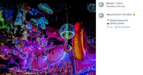 Et c’est ce qu’on découvre assez rapidement en se rendant dans des spots branchés des grandes métropoles. À Lyon par exemple, c’est au Bazart que des fresques hautes en couleurs ont été créées. Un restaurant qui a été designé par Tom Art, street artiste Lyonnais, rendant le lieu totalement unique et hyper tendance. À Paris, on pense aussi au Grand Breguet qui a fait appel à Manette pour refaire son immense mur.